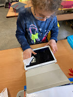 Zum Schluss desinfizieren wir unsere Tablets für Gruppe GRÜN die Morgen damit arbeitet.